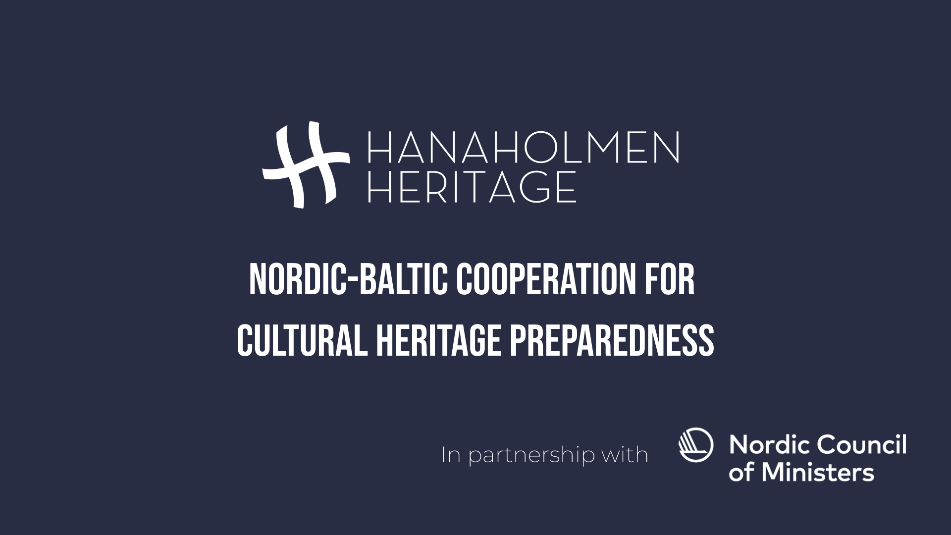 Hanaholmen Heritage is a Nordic–Baltic programme dedicated to cultural heritage preparedness and coordinated by Hanaholmen – the Swedish-Finnish Cultural Centre. The programme is initiated by the Nordic and Baltic Ministers for Culture and funded by the Nordic Council of Ministers. The cooperation consists of a training programme, which leads up to a conference featuring key takeaways from the training participants as well as high-level keynotes from prominent speakers. The initiative responds to the increasing awareness of hybrid, climate-related and military threats to cultural heritage.