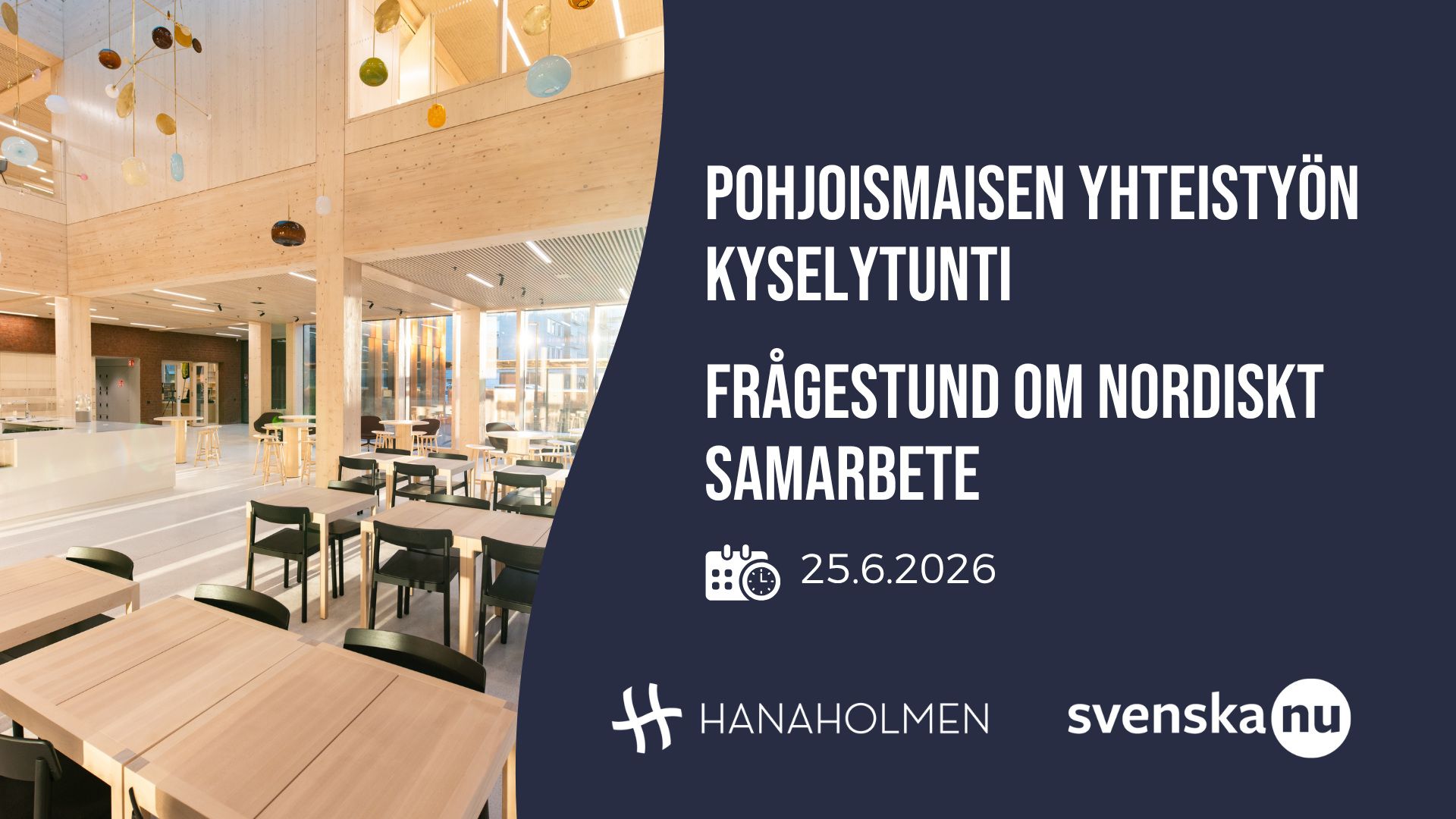 Hanaholmens Svenska nu-nätverk arrangerar en för publiken öppen frågestund, där finländska parlamentariker i Nordiska rådet medverkar. Evenemangets språk är finska, men man kan även ställa frågor på svenska.
